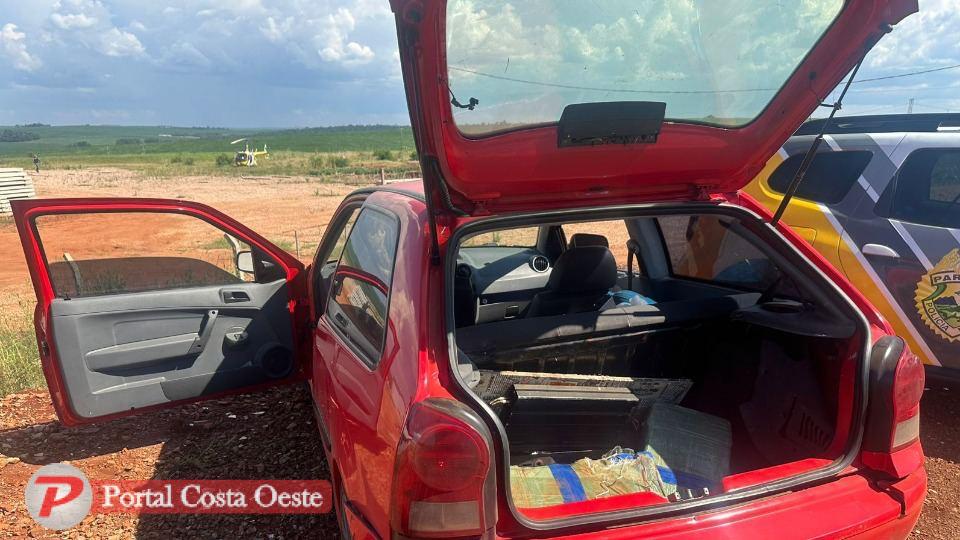 Helicóptero da PM ajuda na prisão de trio com mais de 30 kg de maconha na PR-585, em Toledo