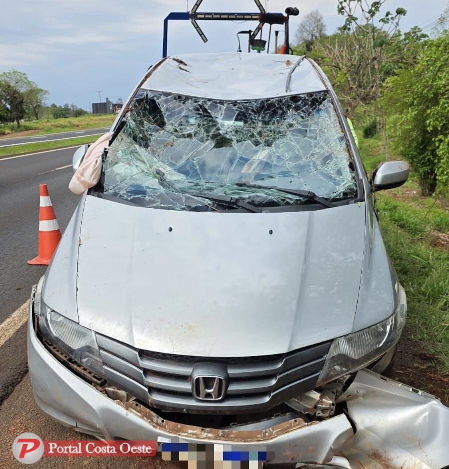 Carro capota com R$ 200 mil em celulares ao fugir de fiscalização na BR-277