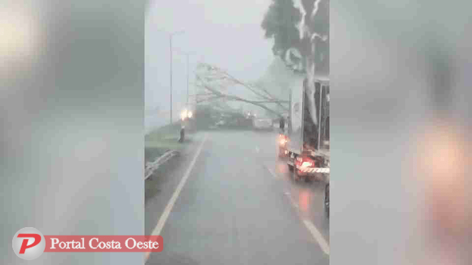 Temporal derruba árvores e bloqueia a BR-277 em Santa Terezinha de Itaipu