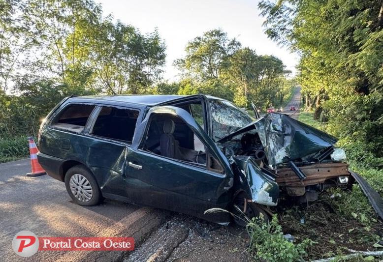 Motorista fica ferida após bater carro contra árvore na PR-497 em São Miguel do Iguaçu