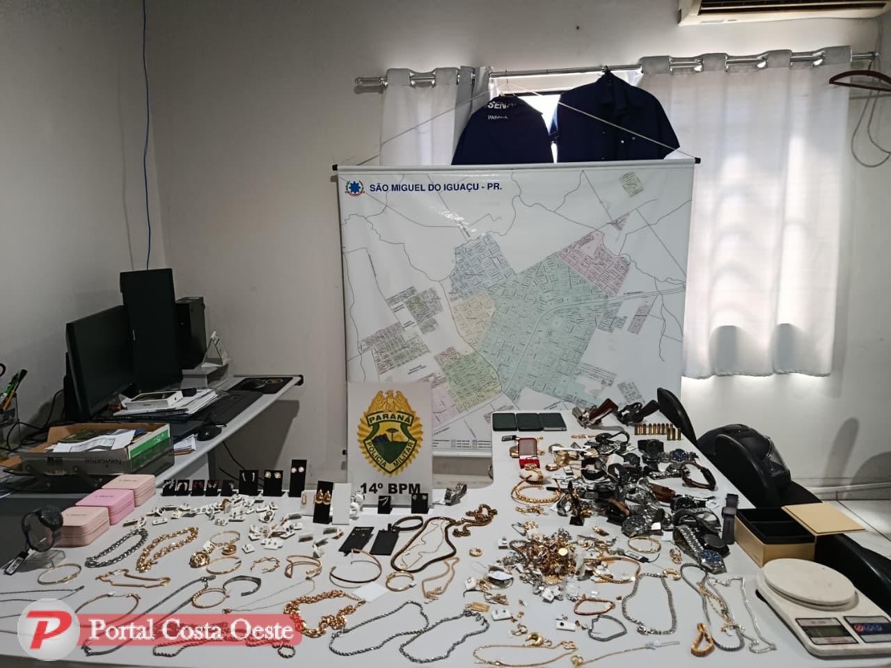 Joias recuperadas pela Polícia após assalto a joalheria passam de R$ 40 mil em São Miguel do Iguaçu